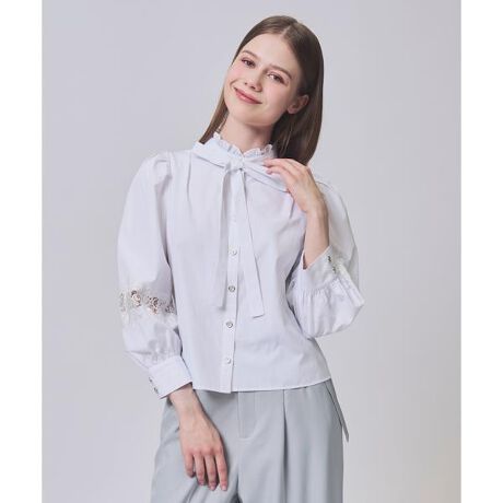 【毎シーズン人気のブラウスがスタンドカラーになって登場!】【Point】・毎シーズン人気の定番デザインをアップデートした進化版ブラウス。今季はスタンドカラー仕様になり、よりクラシカルで洗練された印象に。袖にあしらったレースが可愛く見せてくれるポイント◎・首元のリボンが顔まわりを華やかに見せ、きちんと感のある印象を演出します。・リボンは取り外し可能の2wayタイプです。・通勤から休日のお出かけまで幅広く活躍する1枚です。ケア方法:ドライクリーニング透け感:なし裏地:なし伸縮性:なし光沢感:なし生地の厚さ:薄手