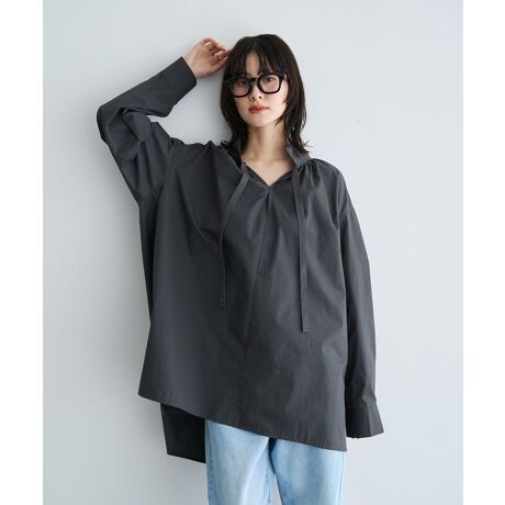 ゆとりのあるオーバーサイズはリラックス感がありながらもだらしなく見えにくいデザイン。袖のボリュームタックもポイントです。