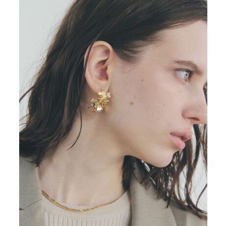 艶やかなメタル素材で表現したフラワーモチーフが、耳元に存在感を添えるピアス。
