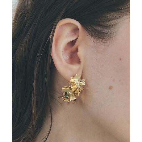 艶やかなメタル素材で表現したフラワーモチーフが、耳元に存在感を添えるピアス。