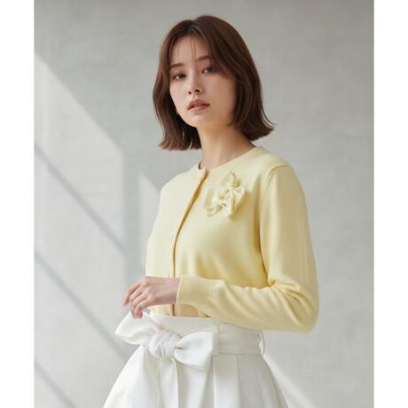 【リボンディテールで華やぎを添える、クルーネックカーディガン】【Point】・胸元にあしらった立体的なダブルリボンが、さりげない甘さと華やかさをプラスします。・コンパクトな丈感でバランスが取りやすく、ワンピースやフレアスカートとも相性◎・胸元のダブルリボンは取り外し可能で、甘さを調整できる2WAYタイプ。着回しを楽しめるアイテムです。・トップスとしても羽織りとしても活躍し、デイリーからお出かけまで幅広く使える大人フェミニンなカーディガンです。ケア方法:手洗い可能透け感:なし裏地:なし伸縮性:あり光沢感:なし生地の厚さ:中肉