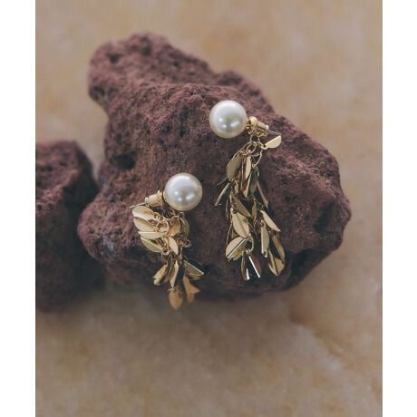 繊細なリーフモチーフが動くたびに揺れ、顔周りを華やかに彩るピアス。