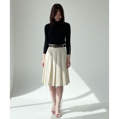 【きちんと感もと抜け感も叶う、ベルト付きプリーツスカート】【Point】・幅広めのプリーツデザインが程よくカジュアルな印象をプラスしつつ、きれいめにも着こなせるスカート。・ヒップラインを拾いにくく、さりげなく体型をカバーしてくれるのも嬉しいポイント。アシンメトリーな裾ラインが軽やかさを演出し、スタイリングに立体感をプラス。・プリーツデザインがヒップラインを拾いにくく、さりげなく体型をカバーしてくれるのも嬉しいポイント。・付属のベルトでウエストマークができ、自然なスタイルアップ効果も◎・ニットを合わせれば、きちんと感のあるクラシカルカジュアルコーデに。