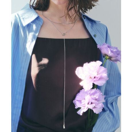 華奢なチェーンと艶やかなワンポイントパーツが、上品な輝きをプラス。トップスの上からでも映えやすく、ニットやシャツ、ワンピースとも好相性です。