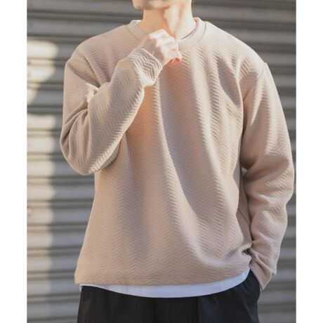 繊細なジオメトリック模様をあしらったジャカード生地で、単色ながらも奥行きと高級感を演出。落ち着いたカラーはどんなボトムスにも馴染み、大人の余裕を感じさせます。襟元と裾からインナーが覗くフェイクレイヤード仕様で、コーディネートに軽やかな引き締めをプラス。春の主役トップスとして、ひと味違う着こなしを楽しめます。
