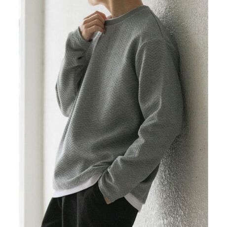 繊細なジオメトリック模様をあしらったジャカード生地で、単色ながらも奥行きと高級感を演出。落ち着いたカラーはどんなボトムスにも馴染み、大人の余裕を感じさせます。襟元と裾からインナーが覗くフェイクレイヤード仕様で、コーディネートに軽やかな引き締めをプラス。春の主役トップスとして、ひと味違う着こなしを楽しめます。