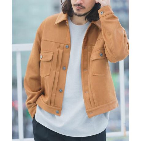滑らかでしっとりとした手触りのフェイクスエード生地を使用したトラッカージャケット。リアルスエードのような上品な光沢感を備えつつ、驚くほど軽量で柔らかな着心地を実現しました。春らしいニュアンスカラーが、ワークスタイルに都会的な軽やかさをプラスします。左右のフラップ付き胸ポケットや重厚感のあるメタルボタンなど、本格仕様を随所に配し、カジュアルながらきちんと感のある大人の休日スタイルを演出します。
