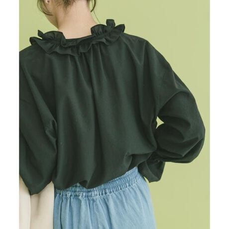ネックラインにあしらわれたギャザーフリルと、ほどよく存在感のある長めのリボンが印象的なフリルカラーブラウス。可愛らしさの中に上品さを感じさせるデザインで、顔まわりを華やかに演出します。リボンは結んでも垂らしても表情が変わり、コーディネートのさりげないアクセントに。クルーネックのニットやスウェットの襟元や袖口からフリルを覗かせれば、簡単にトレンド感のあるレイヤードスタイルが完成。インナーとしても着ぶくれせず、オンオフ問わず活躍する一枚です。