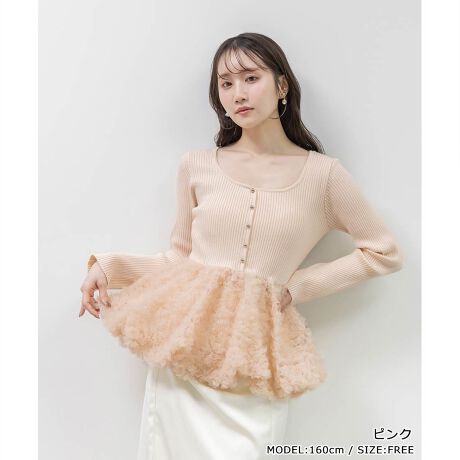 繊細なチュールが描く、華やかな立体感のペプラムニット。