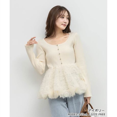 繊細なチュールが描く、華やかな立体感のペプラムニット。