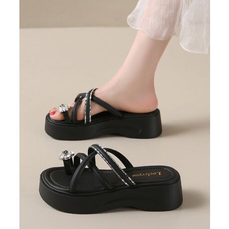 クロスストラップ厚底トングサンダル夏美脚