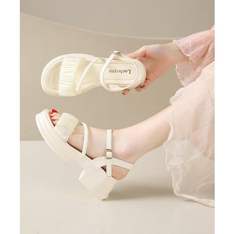 厚底サンダル 太ヒールフリルサンダル美脚