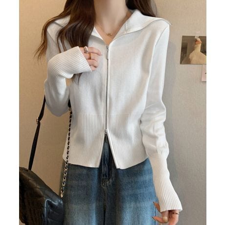 シンプルで着回し力抜群の長袖ニットカーディガン。