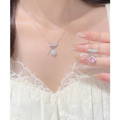 繊細なリボンモチーフときらめくラインストーンをあしらった華奢デザインのネックレス。