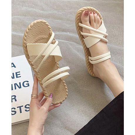 立体感のあるクロスストラップを合わせたフラットサンダル。