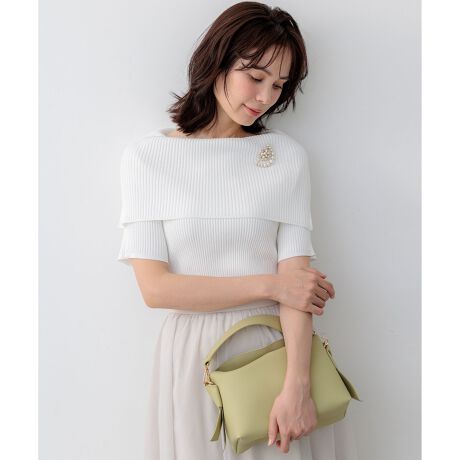 デコルテを上品に美しく魅せるオフショルダー風ニット