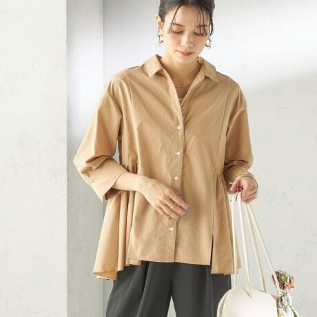 《予約》〈手洗い可能〉ポリエステル コットン ギャザー 切替 羽織 シャツ