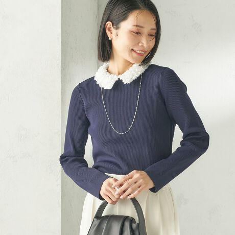 また衿は取り外しが可能で、シンプルなリブニットとして着られるデザインです。