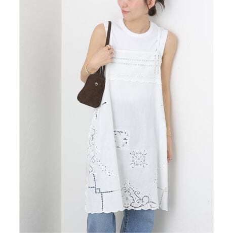 カットワーク刺繍を全体に施したキャミチュニック。