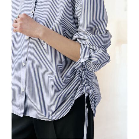 サイドのドロストデザインでウエストのシルエットを自在に調整でき、さりげなく印象を変えられるのがポイントです。