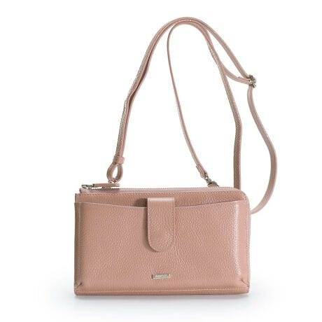 柔らかな質感のシュリンクレザーを贅沢に使用した横型のスマホポシェット。