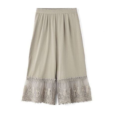猫モチーフアズノゥアズお馴染みの定番ペチパンツが登場です。裾には、品よく座る猫のシルエットが可愛いオリジナルのチュールレースをあしらいました。