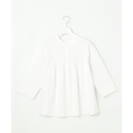 胸元のタックが立体的な表情をプラスする、バンドカラーカットソー