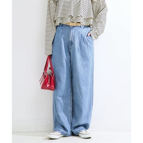 タック入りのトラウザーディテールで、ほどよいワイドストレートシルエット。