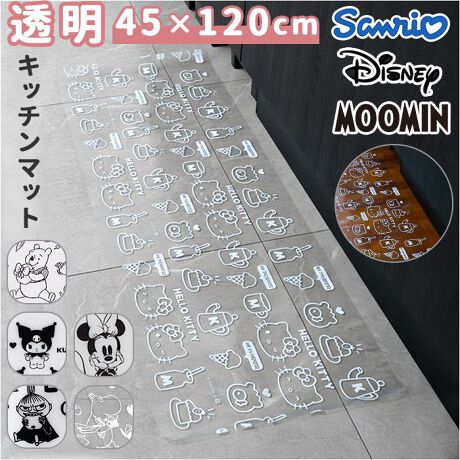 【キャラと過ごす台所時間】キャラクター柄の透明マットで、キッチンの床をおしゃれに保護。【クリア素材で床を守る】透明だからフローリングの美しさはそのままに、水ハネや油汚れから床をしっかりガード◎【汚れもサッとひと拭き】塩化ビニル樹脂製だから水や油がこぼれてもすぐに拭けて、毎日のお掃除がとってもラク!【程よい120cmサイズ】約45×120cmでシンク前やコンロ前など、使いたい場所にちょうどフィットする大きさ〇【愛らしい柄で気分UP】キュートなキャラクターデザインが料理タイムをもっと楽しくしてくれるかわいいマット♪【インテリアに自然と調和】透け感のあるデザインだからどんなキッチンにも馴染んで、空間の雰囲気を壊さない仕上がり。
