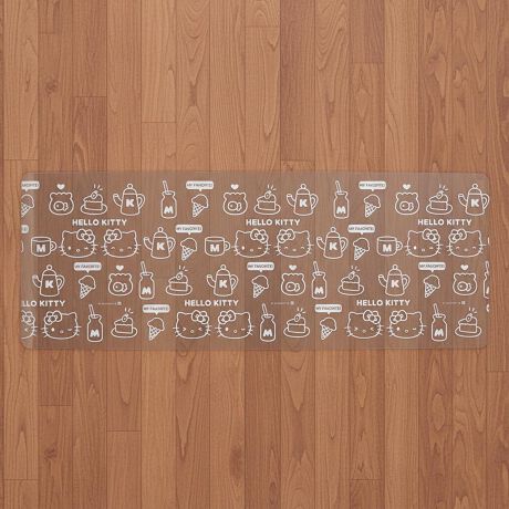 【キャラと過ごす台所時間】キャラクター柄の透明マットで、キッチンの床をおしゃれに保護。【クリア素材で床を守る】透明だからフローリングの美しさはそのままに、水ハネや油汚れから床をしっかりガード◎【汚れもサッとひと拭き】塩化ビニル樹脂製だから水や油がこぼれてもすぐに拭けて、毎日のお掃除がとってもラク!【程よい120cmサイズ】約45×120cmでシンク前やコンロ前など、使いたい場所にちょうどフィットする大きさ〇【愛らしい柄で気分UP】キュートなキャラクターデザインが料理タイムをもっと楽しくしてくれるかわいいマット♪【インテリアに自然と調和】透け感のあるデザインだからどんなキッチンにも馴染んで、空間の雰囲気を壊さない仕上がり。