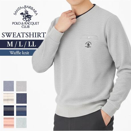 【大人カジュアルの新定番】こなれ感抜群のSANTA BARBARAのトレーナーが登場。【一枚で完成する上品スタイル】ワッフル生地の立体感がこなれ感を演出する、大人のトレーナー〇【胸元ポケットで実用性も抜群】小物収納に便利なポケット付きで、デイリー使いに最適なデザイン◎【配色リブが引き締め効果を発揮】首元のネイビーリブがスタイルアップを叶える、計算されたディテール♪【伸縮性抜群の袖口と裾リブ】リブが程よくフィットし、シルエットをキープ!【刺繍ロゴで高級感を演出】胸元に施された刺繍がさりげなく品格を高める、こだわり仕様。【長く着回せる万能素材】程よい厚みで季節の変わり目にも対応できる、頼れる一枚〇