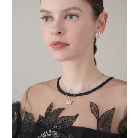 ドレスアップの胸元に、繊細な華やぎを添えるバタフライモチーフネックレス。