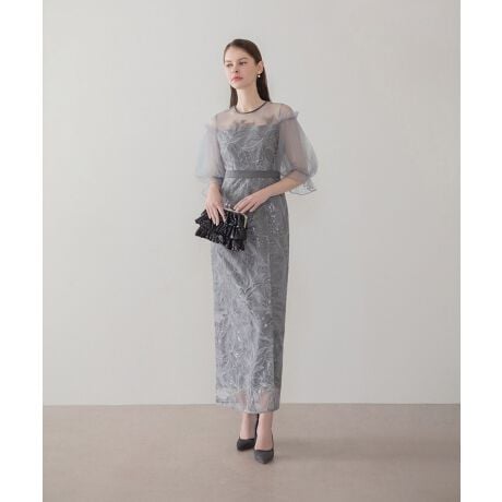 シアーな袖が奏でる柔らかな余韻。リーフの煌めきに宿る、気品あふれる佇まい。