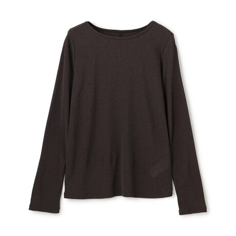 ■デザインリブの表面感と透け過ぎないシアー感が魅力のロンTです。身体のラインを拾いすぎない程よいフィット感と、鎖骨がキレイに見えるボートネックデザインで、女性らしいシルエットに仕上げました。袖丈は少し長めで作っているためアームラインをスタイリッシュに演出します。サラサラとした肌触りで着心地が良く、単品はもちろんのことシャツやニットのレイヤードインナーとしても最適です。ロングシーズン着回せる万能トップスです。
