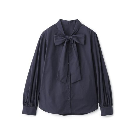 トレンド感のある大きめのボウタイが、華やかさと上品さを両立させるブラウス。後ろ身頃はヨーク切り替えとタックが入っており、春はジャケットやジレのインナーとして、暑い時期には1枚で着てもスタイリングが決まる、着やすいサイズ感のベーシックシャツアイテムです。