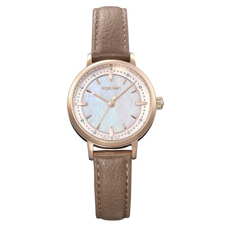 深みのあるブラウンレザーベルトが手元にあたたかみと落ち着きを与えるモデルです。