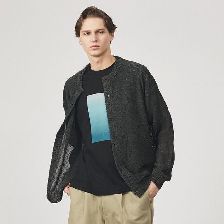 和紙のようなドライな質感と、軽やかな表情が魅力のクルーネックカーディガン。