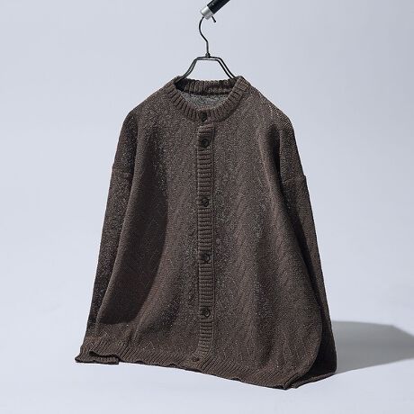 和紙のようなドライな質感と、軽やかな表情が魅力のクルーネックカーディガン。