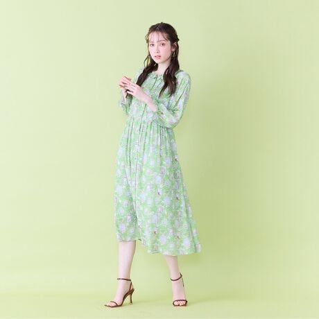 ・首元の細かなフリルや身頃のピンタックなど繊細なディテールをプラスしたデザインワンピース。