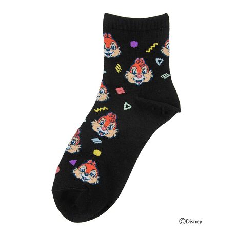 ネオン調のモチーフにチップとデールがあしらわれた総柄デザインのクルー丈ソックスです。