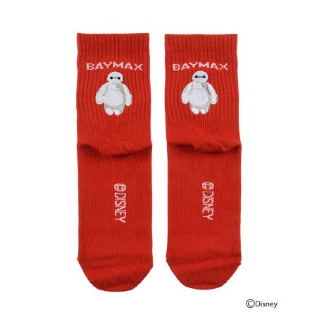 大人気ディズニーのベイマックスのクルー丈ソックスです。パッとしたレッドにベイマックスのワンポイントが目を引くリブソックスです。