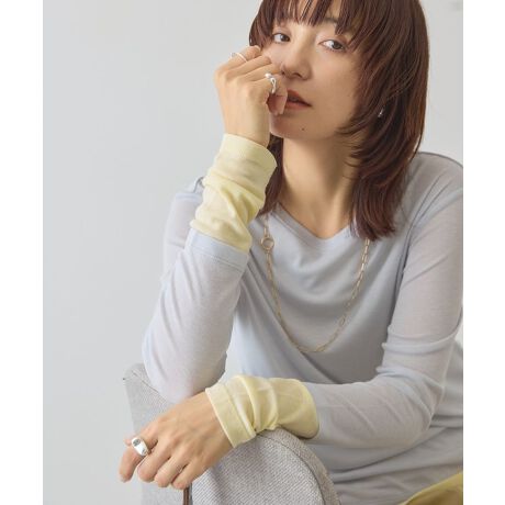 1枚でトレンドのレイヤードスタイルが叶う配色プルオーバー。程よくシアーな柔らか素材で着心地よく、おしゃれな抜け感と女性らしさをプラスします。袖口と裾のカラーコントラストがコーディネートのアクセントに。メイントップとしてはもちろん、シャツやジャケットのインナーとしても活躍してくれる汎用性の高いアイテムです。透け感[ややあり]