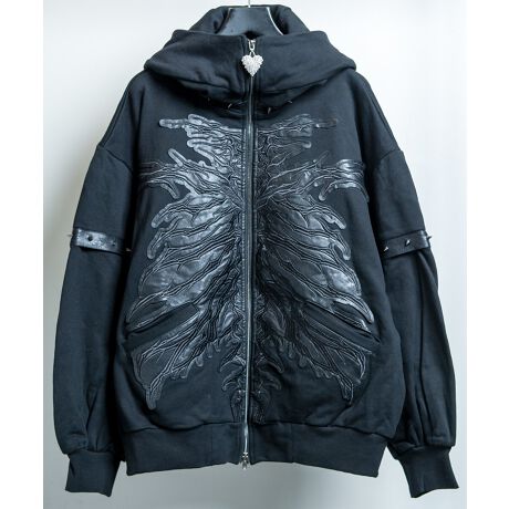 フロントにはボーンモチーフの刺繍を配置。