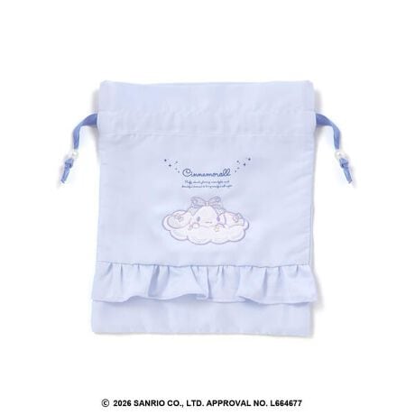 オフホワイト:モクモク雲の上でまったりくつろぐシナモロールが主役。切り替え部分にはフリルをあしらい、やさしく甘い印象に