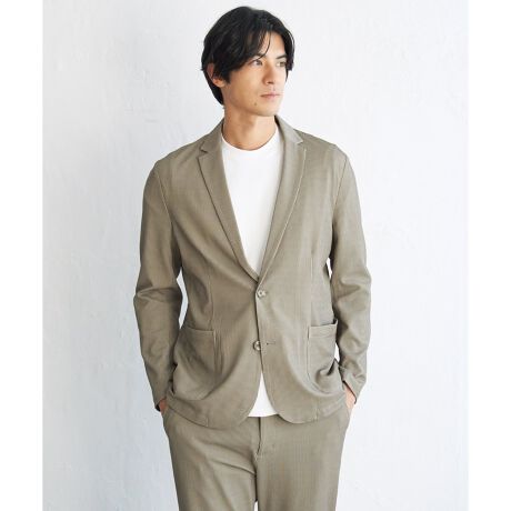 凹凸感のあるサッカージャージー素材を使用した、軽やかな着心地のテーラードジャケット。