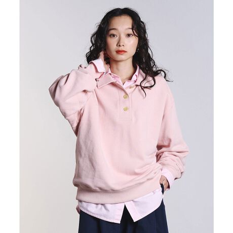 襟付きデザインなので、スウェットでもラフになりすぎず着られる一枚です。