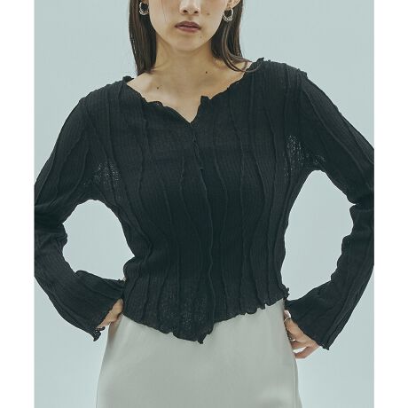 ウェーブ状のタックが入った生地が、動きのあるシルエットをつくってくれるトップスです。