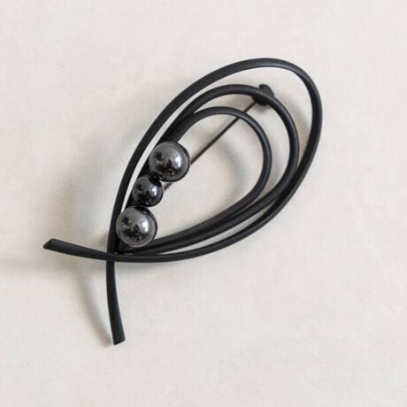 黒塗装のメタルにグレーパールがあしらわれたブローチ。