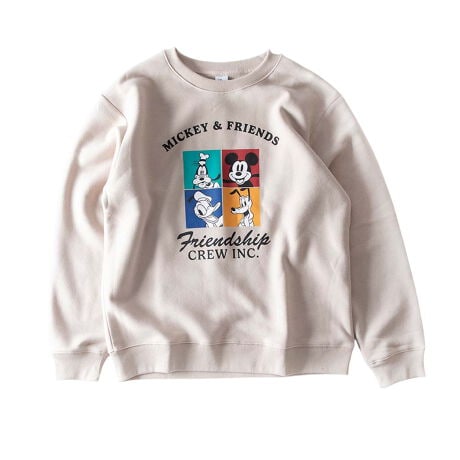 商品情報: スエット 秋冬 レトロ キャラクター ミッキー ドナルド 暖かい トップス シンプル 全4種 長袖 Uネック 白 黒 ホワイト ブラック M L LL XL 大きいサイズ メンズファッション プレゼント ギフト おしゃれ ジェネレス GENELESS グレージュ スミクロ オートミール 綿
