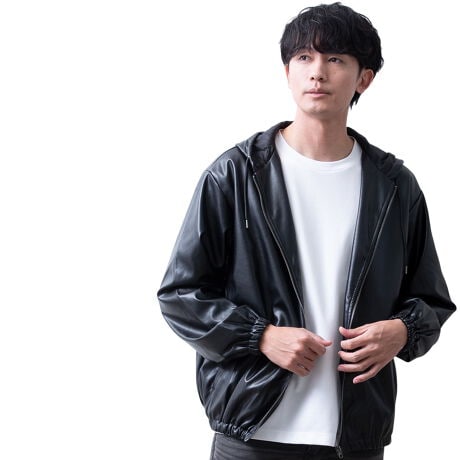 商品名:アウター メンズ パーカー フェイクレザー PUレザー 秋冬 ブルゾン ジップアップパーカー